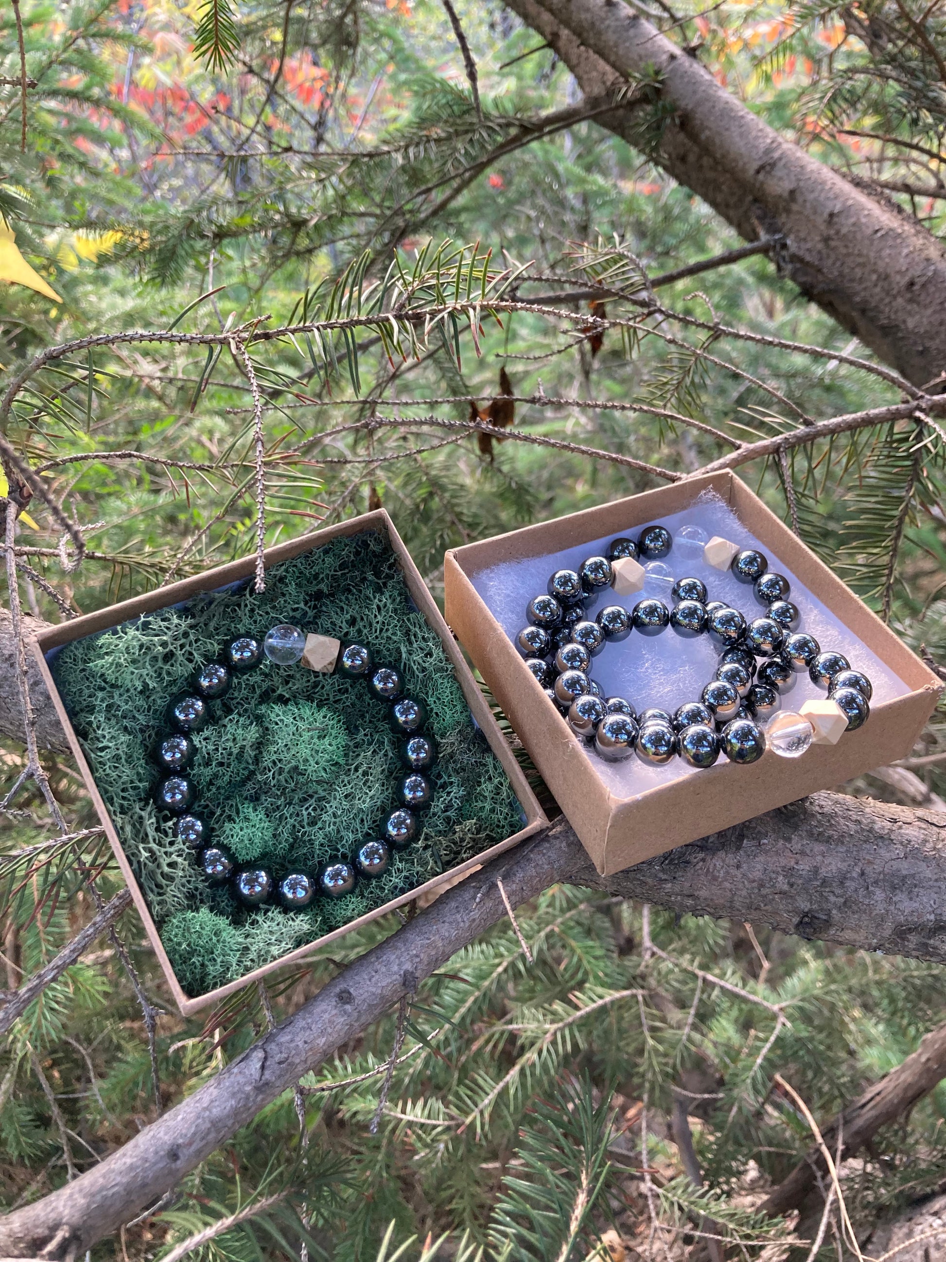 The superior grounding effects of Hematite strengthens the blood and has been used in ancient civilizations as a warrior stone - our deep respect for our heritage is reflected by our signature line. Hematite can clear and recharge other crystals or gemstone bracelets.